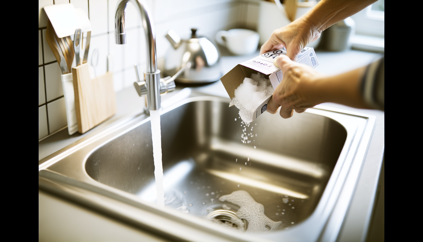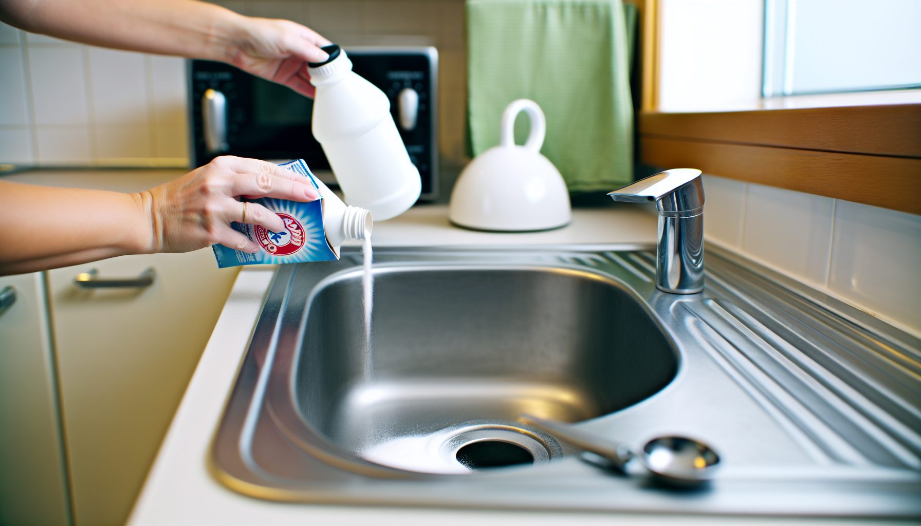 Cette technique permet également d’assainir l’évier et de le désodoriser.
